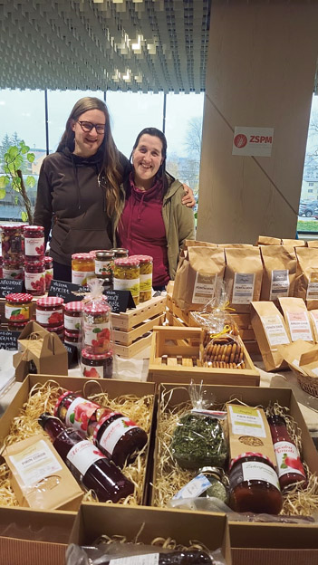 Preostali del ekipe ZSPM je svoje petkovo dopoldne preživel na Tržnici mladih kmetov v avli Ministrstva za kmetijstvo, gozdarstvo in prehrano. Trinajst mladih kmetov in kmetic z vseh koncev Slovenije je podeželje prineslo v prestolnico in številnim obiskovalcem predstavljalo in ponujalo svoje izdelke. ZSPM pa je v sklopu tržnice predstavljala svoje vsebine in projekte, poseben poudarek smo namenili projektu Počutje na kmetiji: krepitev virov in znanj, ki ga imenujemo Polja Moči. Vodilni partner projekta je Družbenomedicinski inštitut ZRC SAZU, ki se nam je ob tej priložnosti tudi pridružil. Mlade kmete, kmetice, obiskovalce in tudi odločevalce smo s prisotnostjo in predstavitvijo naših aktivnosti želeli opozoriti na izzive duševnega zdravja med kmečkim prebivalstvom.